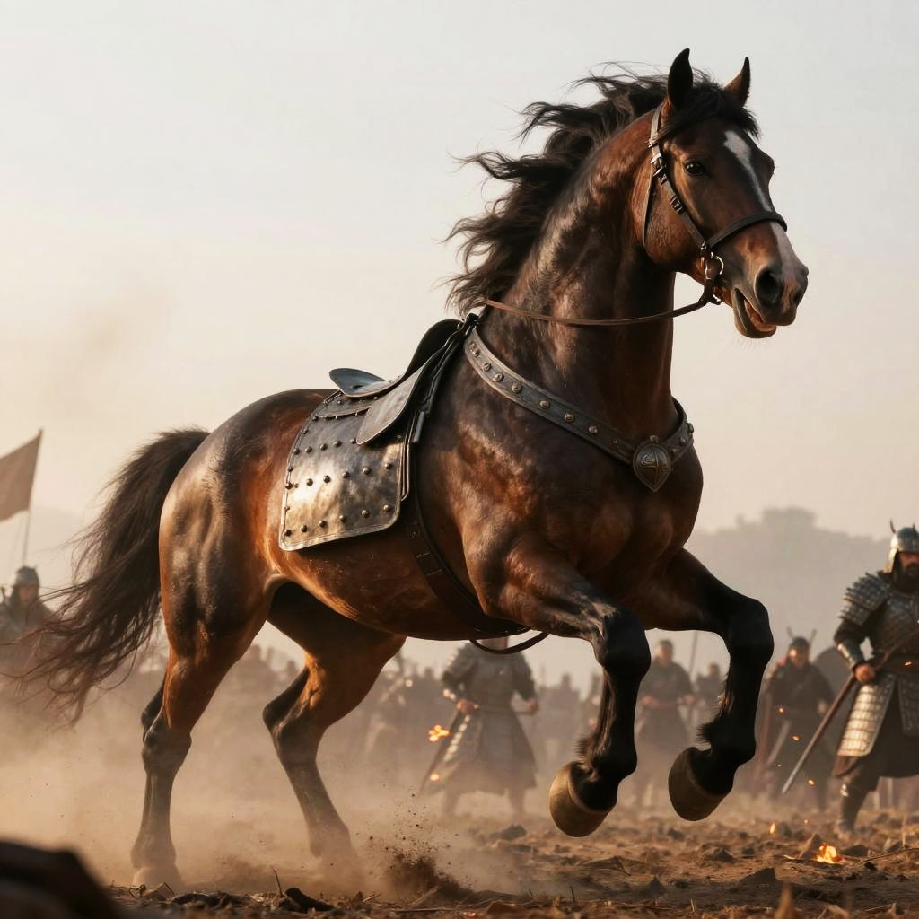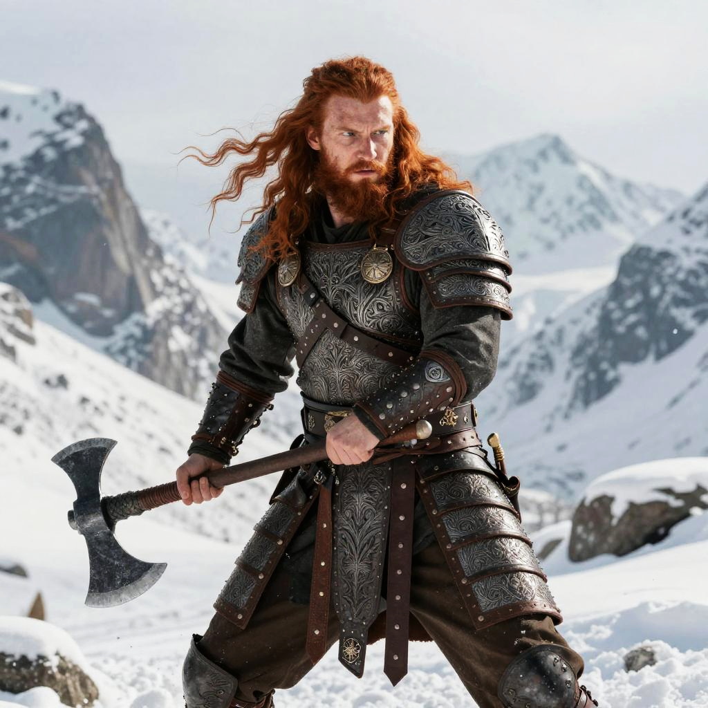 Stepan riding a majestic black stallion through a snowy mountain pass, wind blowing his cloak, epic fantasy landscape, dynamic action pose, vibrant colors, intricate armor design, atmospheric perspective