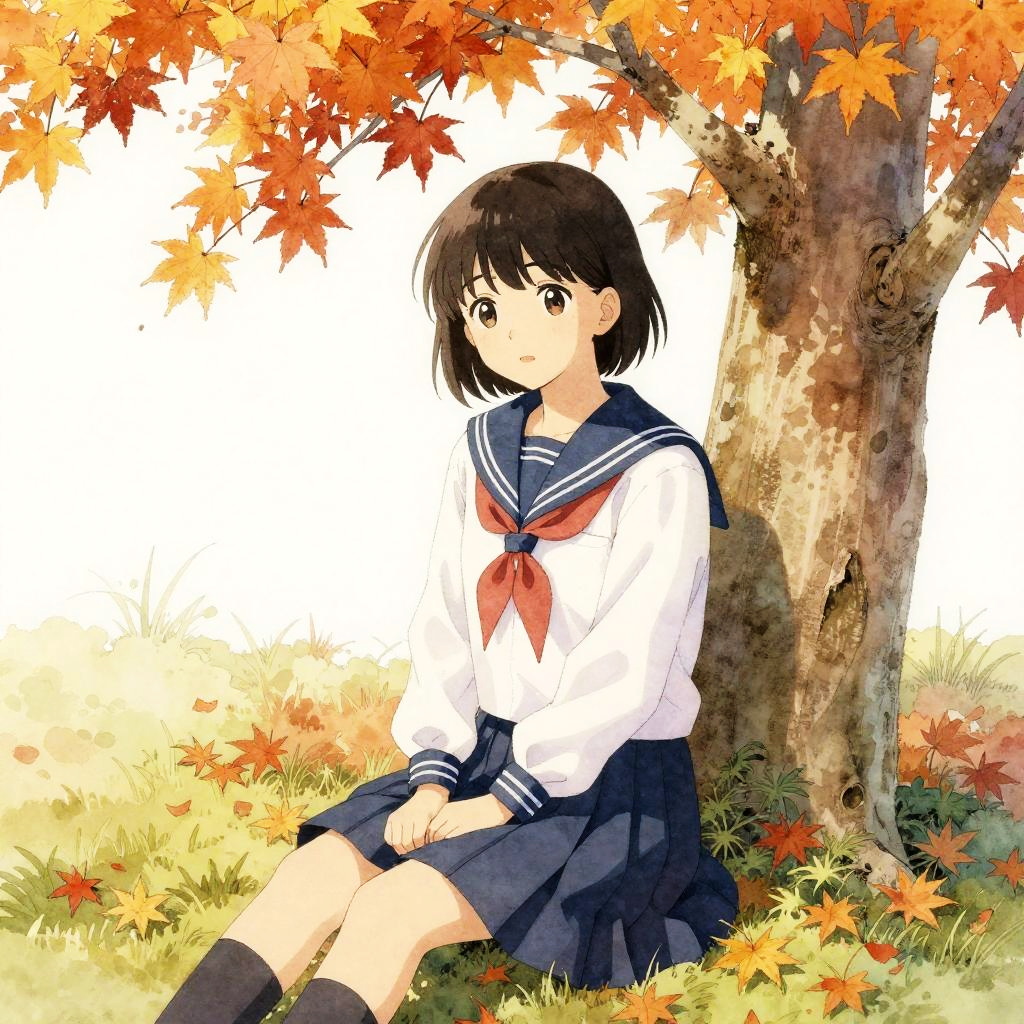 Anime girls black hair, traditional kimono, cherry blossom petals falling, serene garden setting, watercolor style, intricate patterns, peaceful atmosphere