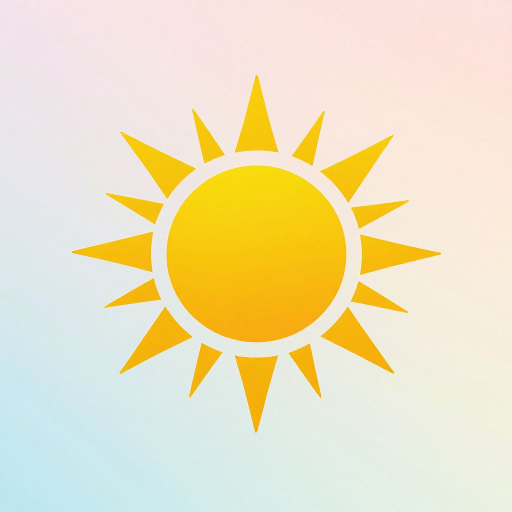 Sun art design combining minimalist shapes and vibrant colors, featuring a circular sun icon with sharp triangular rays, set on a pastel ombre background, creating a modern and elegant composition with subtle texture and light reflections.