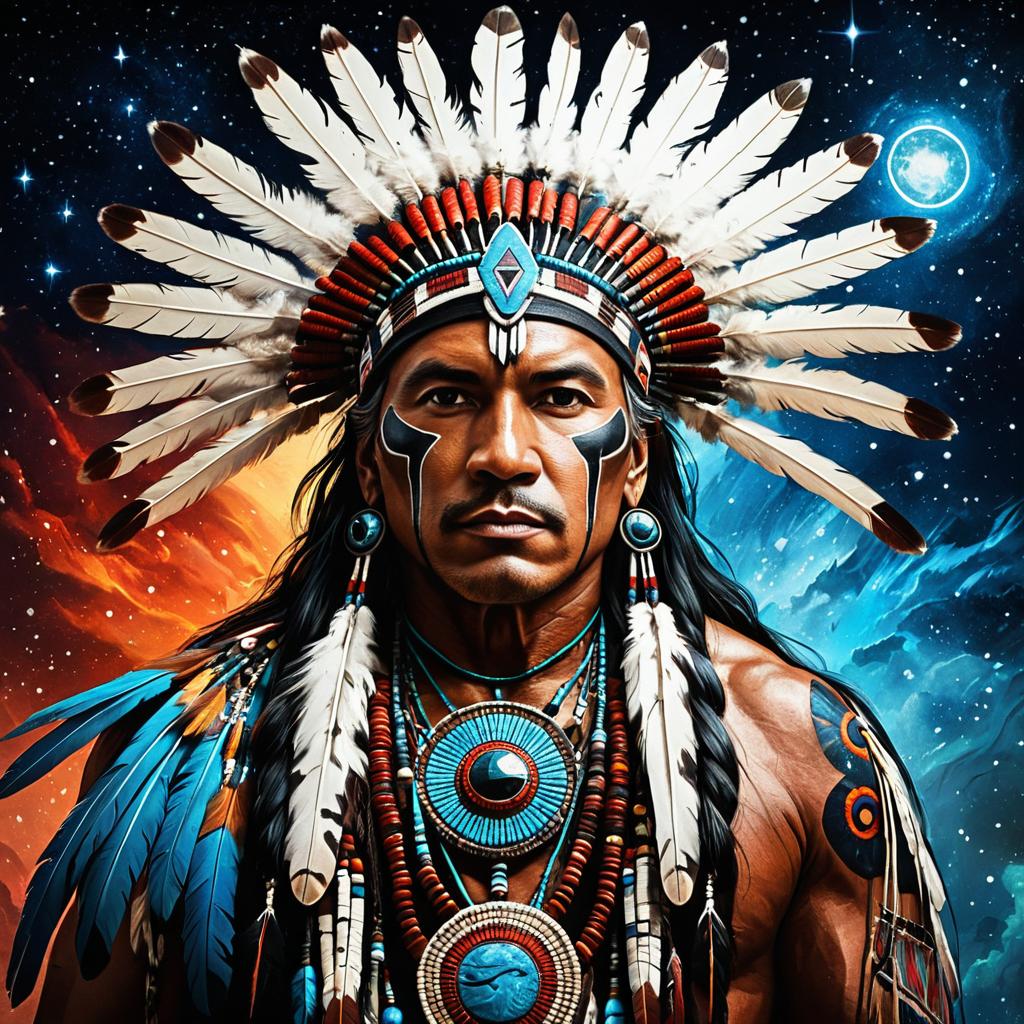 Realistic photo.Native American shaman fantasy featuring a powerful thunderbird, fantasy magic, anime native style, cosmic and intricate, sharp focus, highly detailed digital painting, concept art, inspired by Paul Lewin, masterpiece quality, vibrant colors