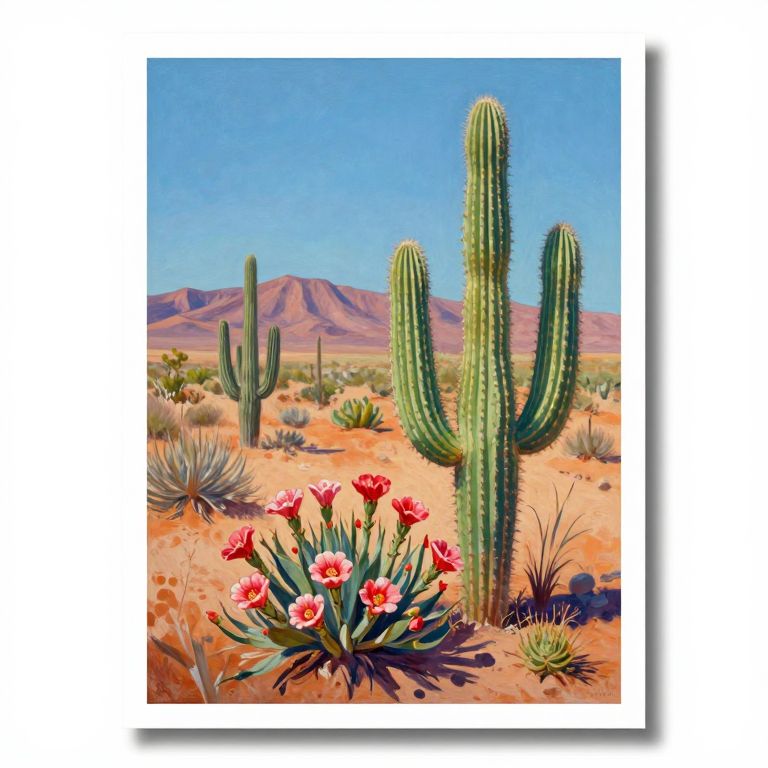 Desert Poster featuring the painting Cactus Blossoms In Desert by Aleksandra Buha