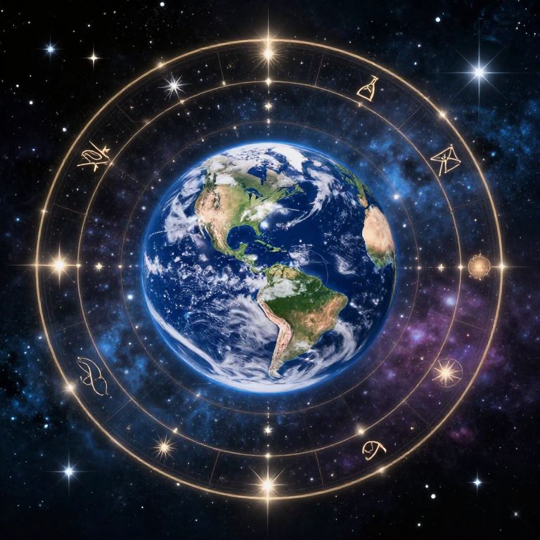 Earth Amid Cosmic Zodiac Kaleidoscope