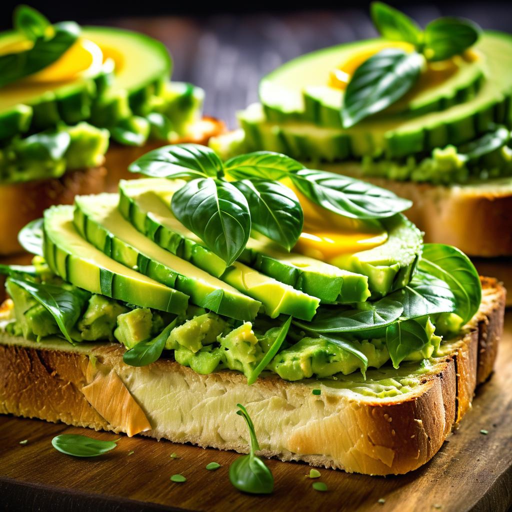 Macro gourmet photography of fresh avocado toast in HDR, professional quality with vibrant details.