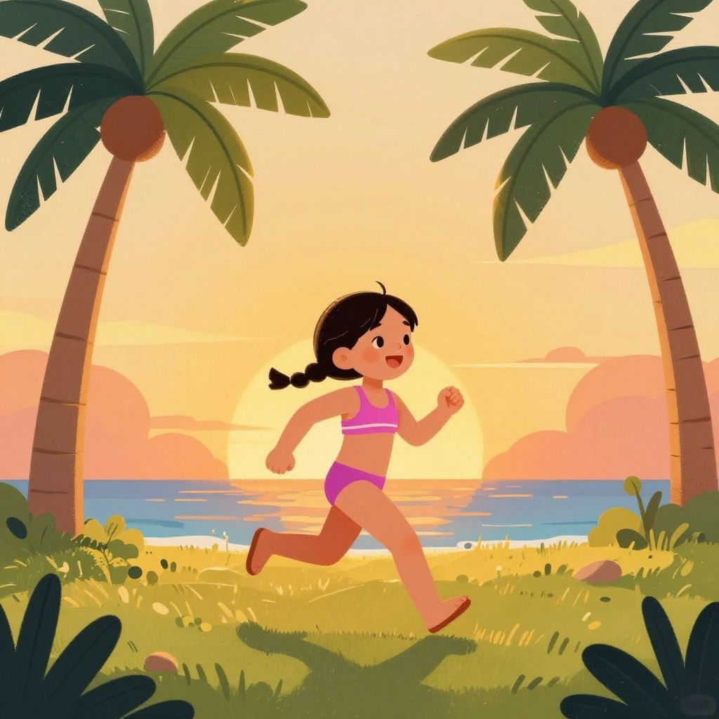 Running Woman in 1970s Style Vector Art