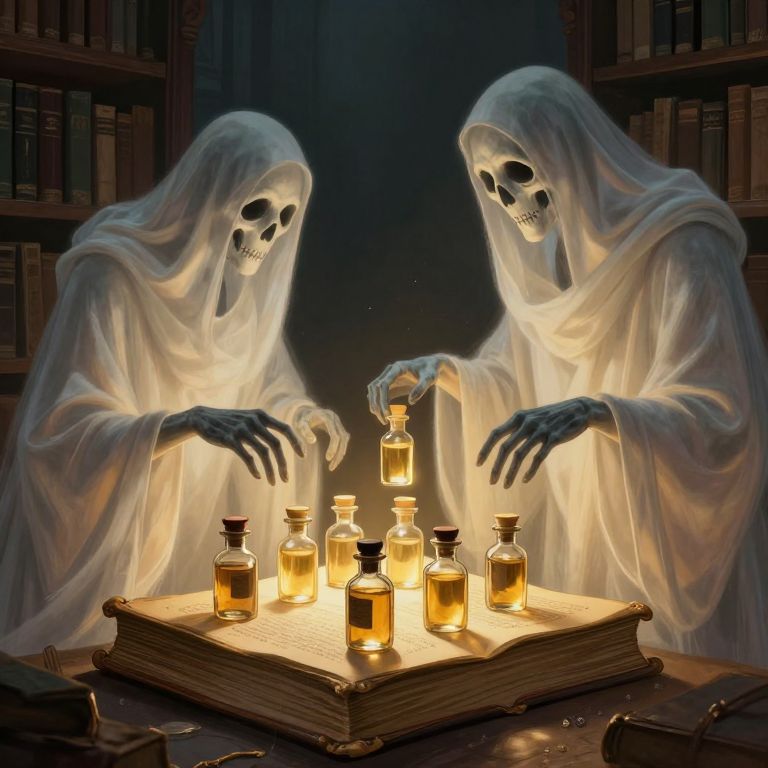 A hauntingly atmospheric digital illustration depicts a ghostly figure cloaked in white, sitting cross-legged amidst dimly lit library shelves, absorbed in reading a book, embodying the eerie yet intriguing concept of spectral readers tasked with neutralizing disturbing literature through their ethereal presence.