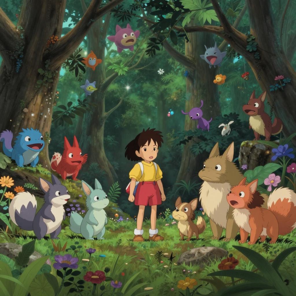 Studio Ghibli Style Illustration of Two Boys by Fireplace