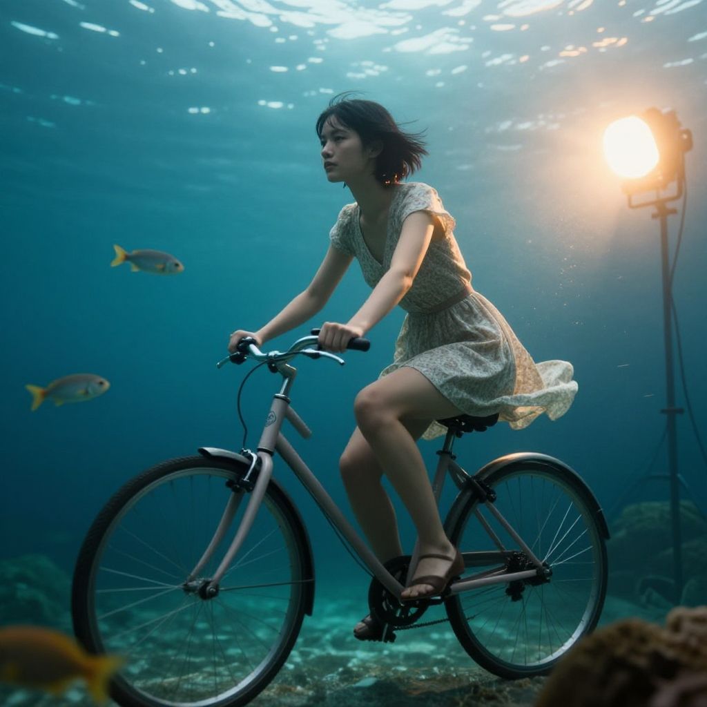 Underwater Bicycle Portrait in Cinematic Light