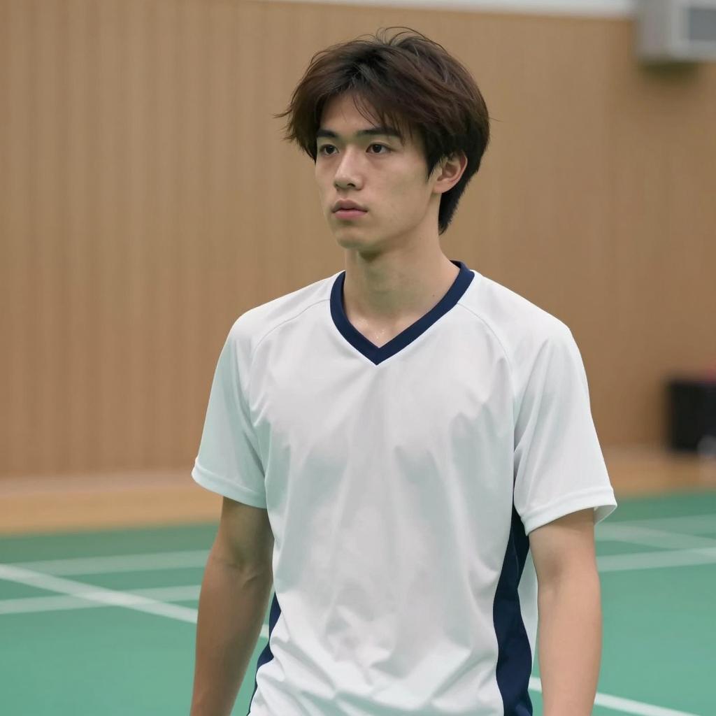 Young Asian Man in Black and White Raglan Shirt
