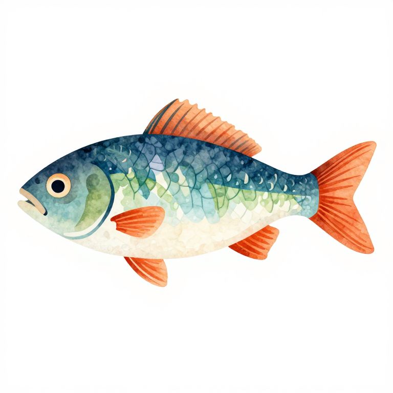 A vibrant, watercolor-style illustration of a fish with a minimalist, flat art design, featuring sharp focus and super-detailed textures.