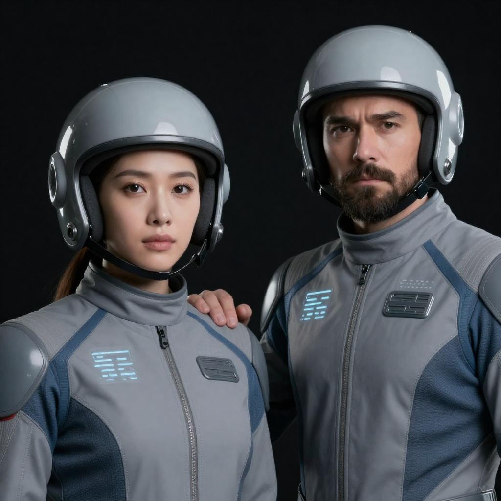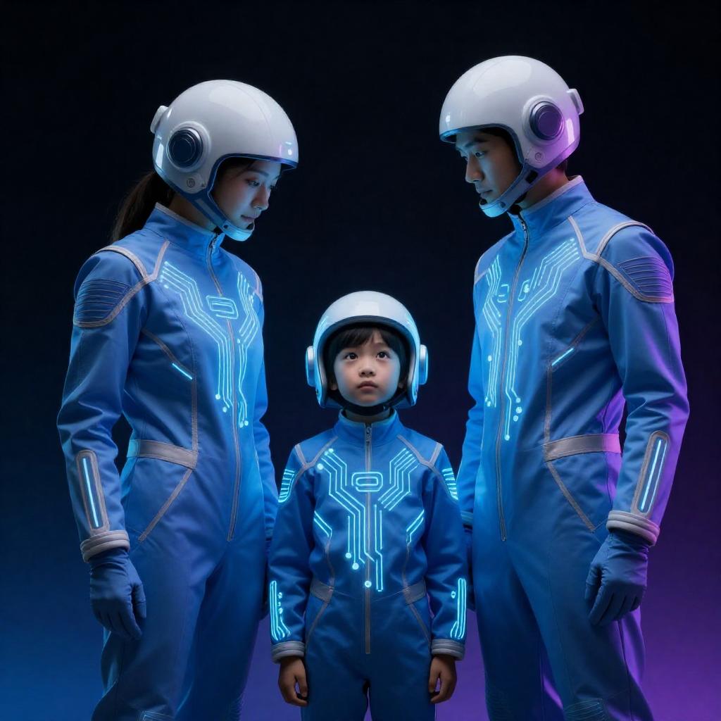 Futuristic Family in Glowing Suits