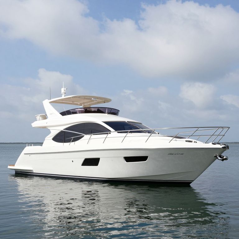 White 2013 Richmond Yachts 150 Tri-deck Motor Yacht \"Revive\" gracefully floats on calm waters, showcasing its sleek design and polished exterior under a partly cloudy sky.