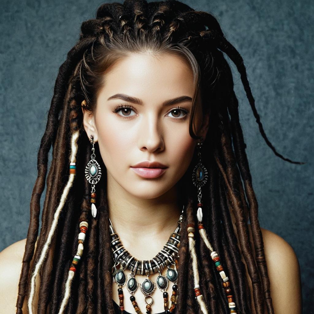 Young Woman with Artistic Dreadlocks and Tribal Jewelry