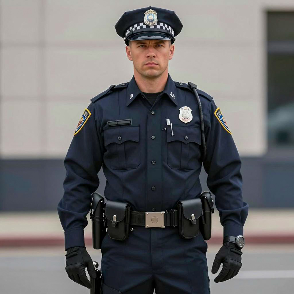 Serious Male Police Officer in Black Uniform