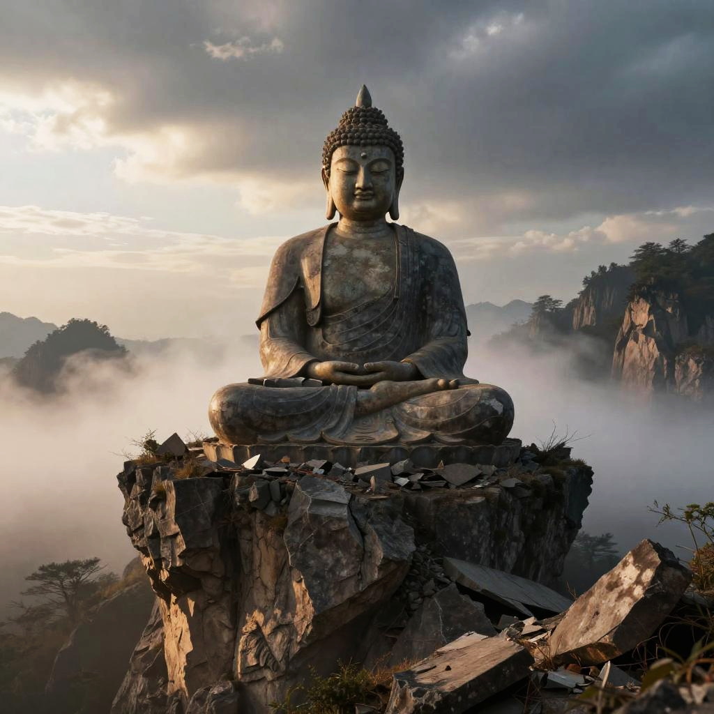Vibrant Temple with Golden Buddha Statue