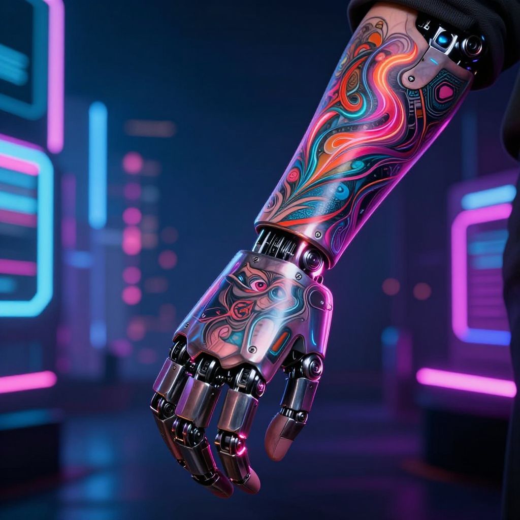 Johnny Silverhand drink served in a sleek glass with metallic accents, surrounded by futuristic tech and holographic elements, cyberpunk style, intense neon glow, moody and atmospheric scene