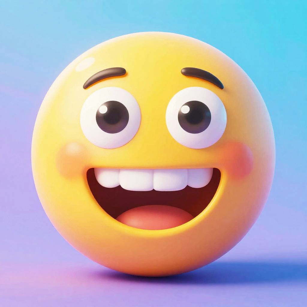 Mememoji style character with exaggerated facial expressions, colorful and playful, smooth gradients, simple shapes, glossy finish, bright and vibrant background, digital art style, modern and fun, high resolution