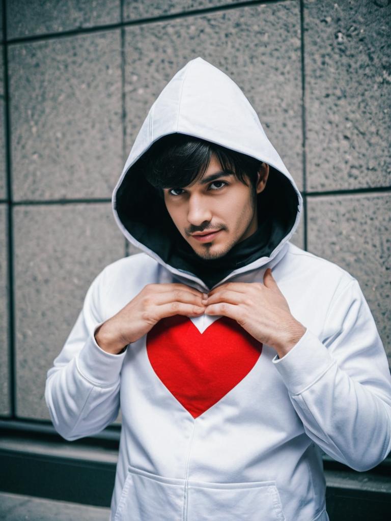 Man in Heart Shaped Love Symbol costume, professional cosplay photography