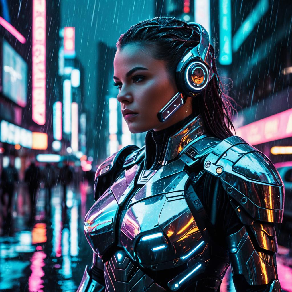 Futuristic Woman in Cyberpunk Urban Night