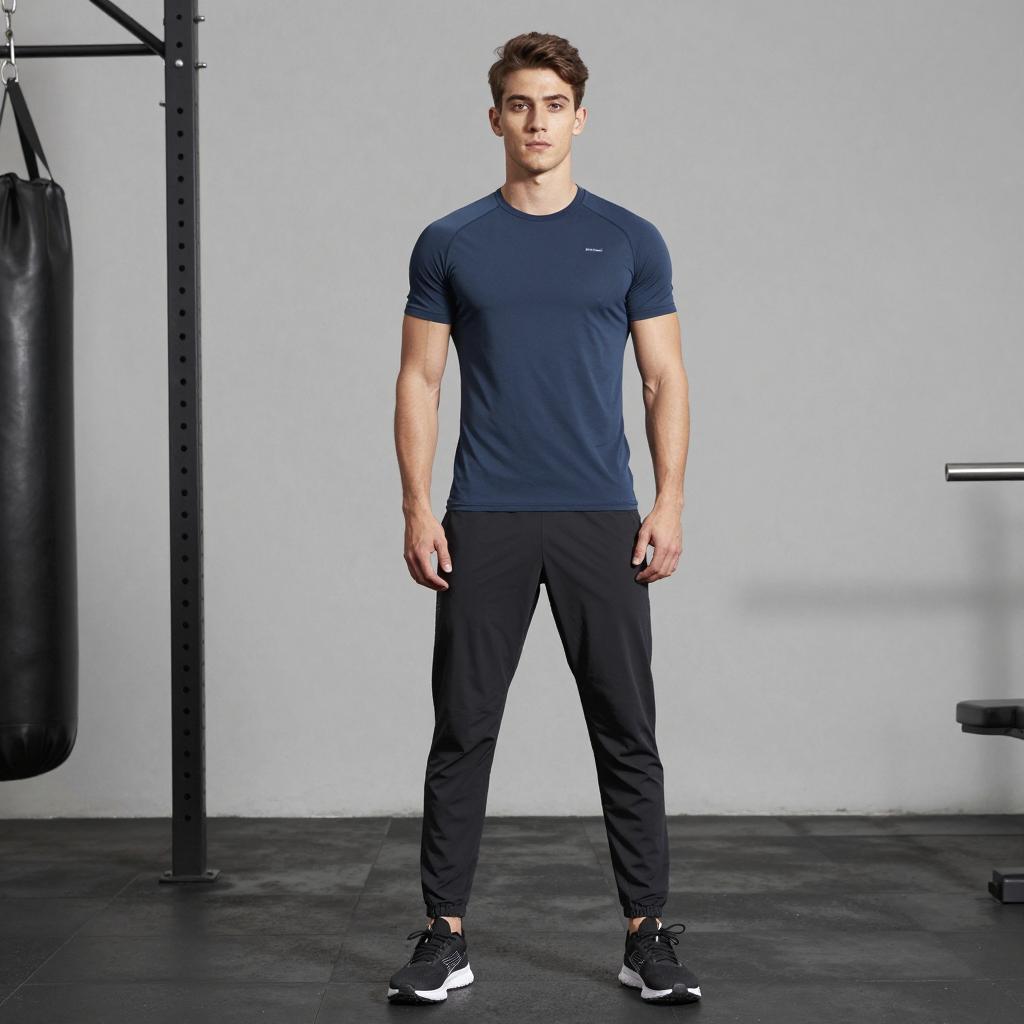 An artistic portrait of a man standing confidently in a modern outdoor setting, dressed in athletic wear with a red and blue hooded jacket, displaying a casual yet determined demeanor.
