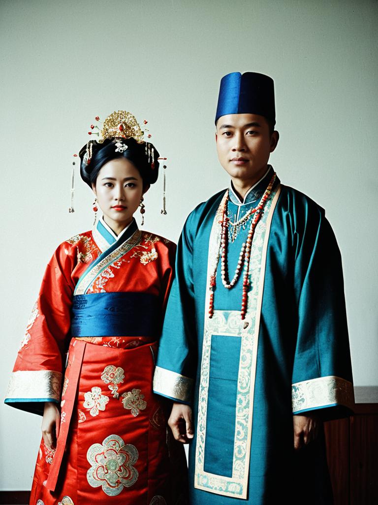 Couple in Luo Traditional Wedding attire, dramatic editorial photo, photorealistic