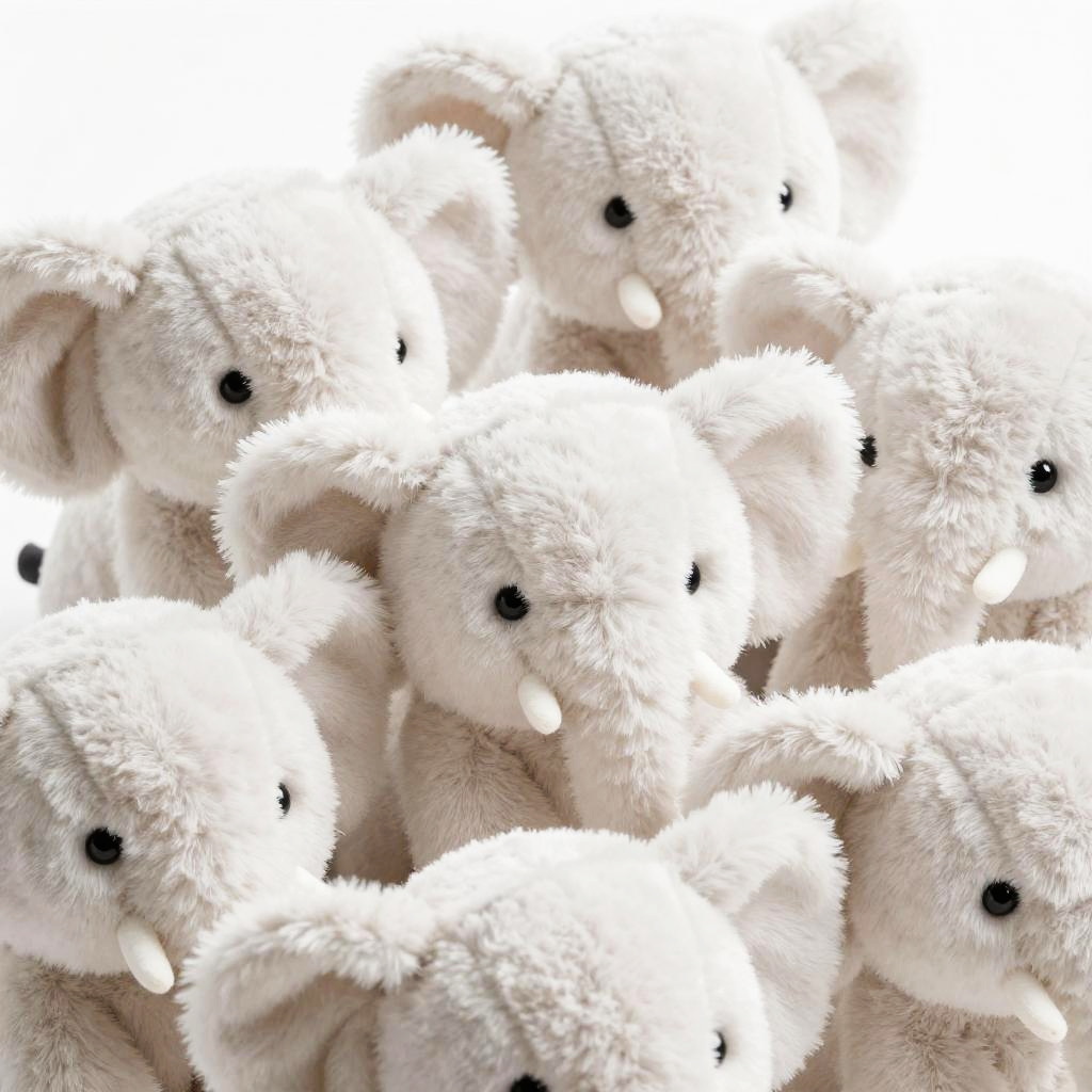Close-Up of Plush White Elephants