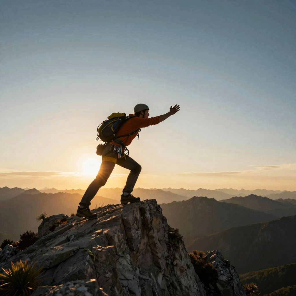 Mountain Climber Achieving Peak Performance