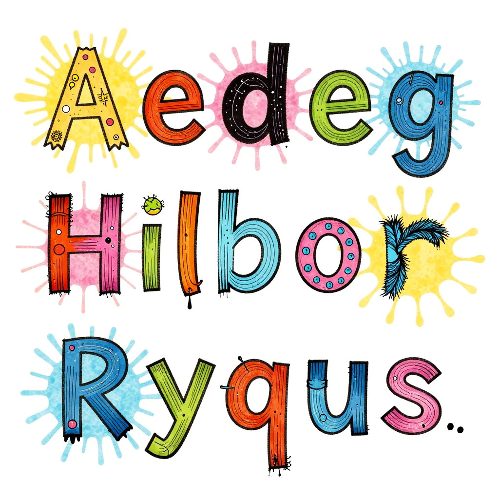 Illustrate a Dr Seuss font generator concept featuring a set of letters with uneven, jolly strokes, exaggerated serif details and fantastical embellishments, colorful splashes behind each character on a clean background, capturing playful, imaginative spirit