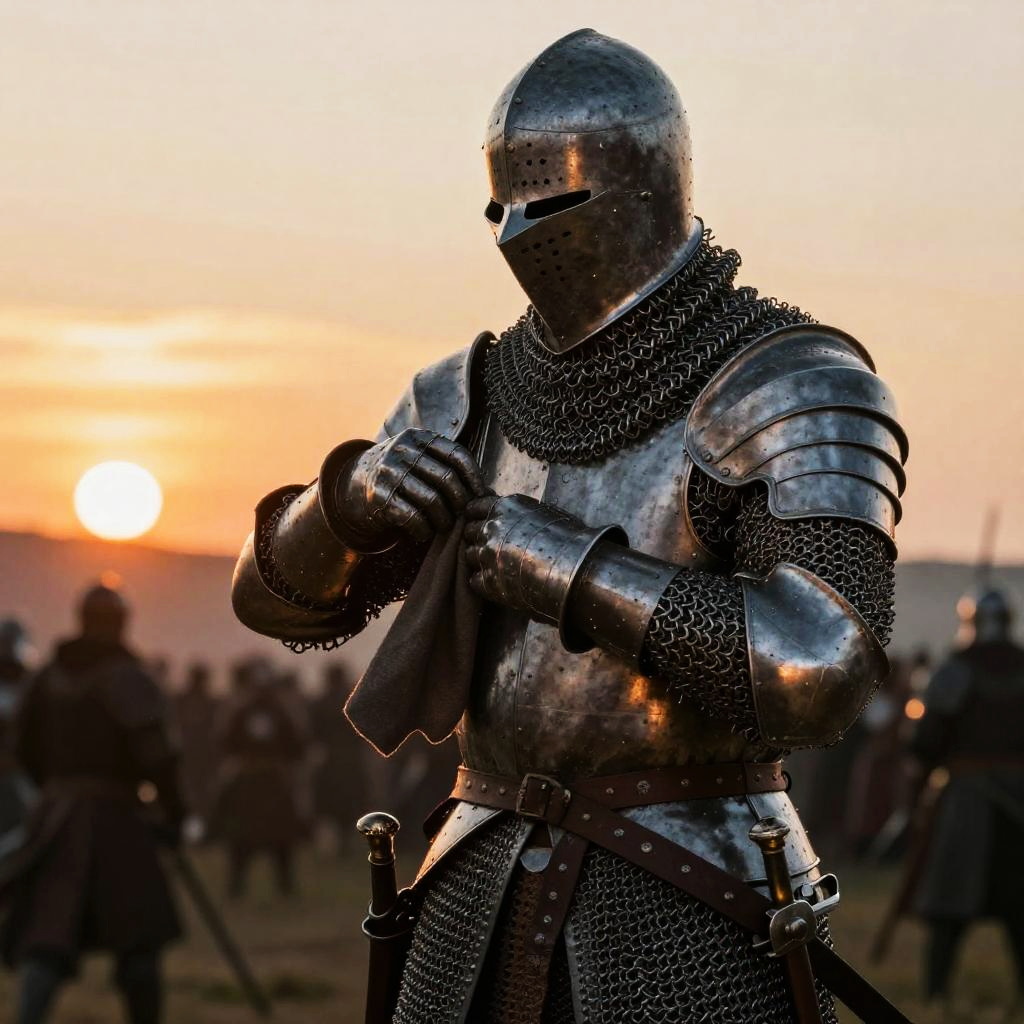 Knight Shedding Armor at Sunset