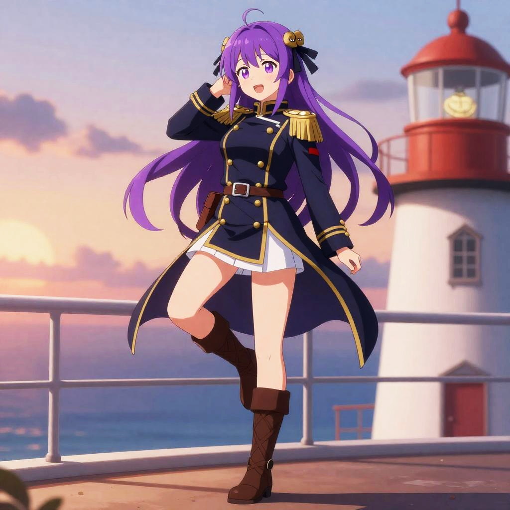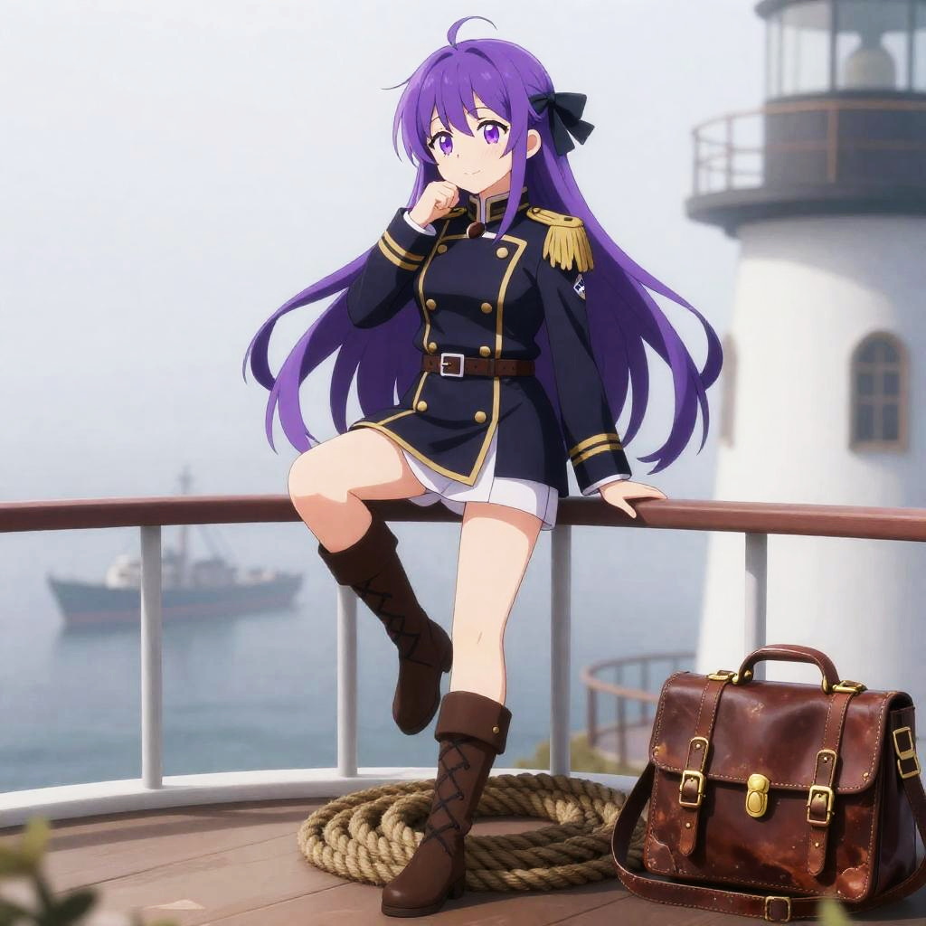 Anime Girl with Purple Hair in School Uniform on Rooftop