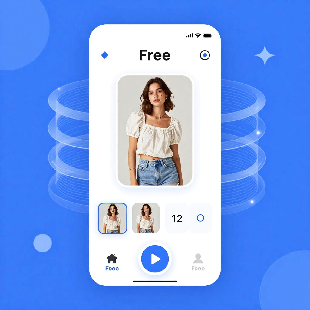 Dynamic free shirt design maker app interface shown on a smartphone, user selecting colors and fonts to customize a T-shirt, energetic creative vibe with neon highlights and cool geometric backgrounds, casual artist wearing headphones focused on design process