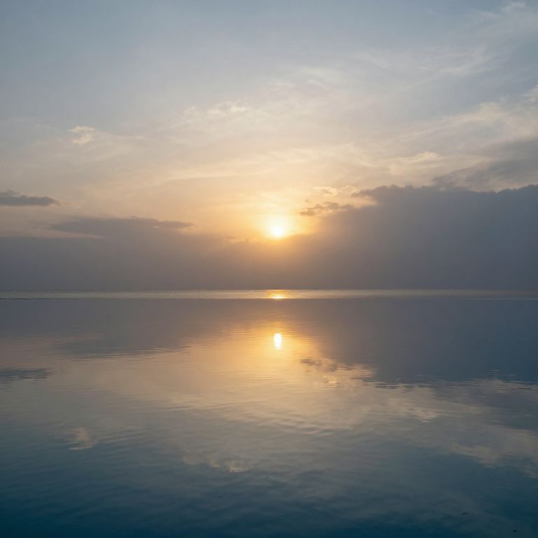 A serene pool of liquid mirrors the heavens, inviting introspection and echoing the whispers of forgotten dreams, where the sun's golden embrace cradles the soul in a moment of timeless reflection.