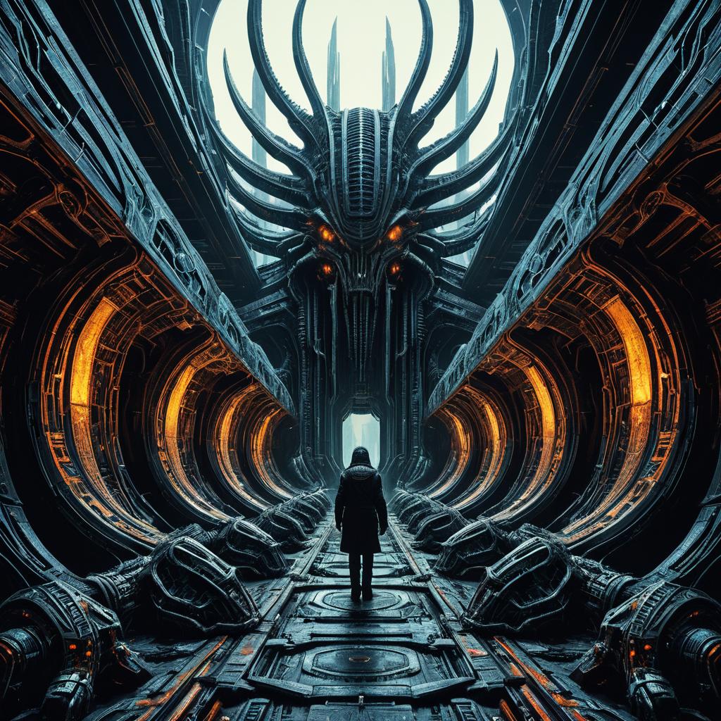 Robot rebellion, hdr, volumetric lighting, depth of field, sci-fi, hyperrealistic, annihilation of humankind, neo apocalypse, by syd mead hr giger moebius zdzislaw beksinski, very detailed, ornate, intricate, octane render, dramatic lighting, photorealistic
