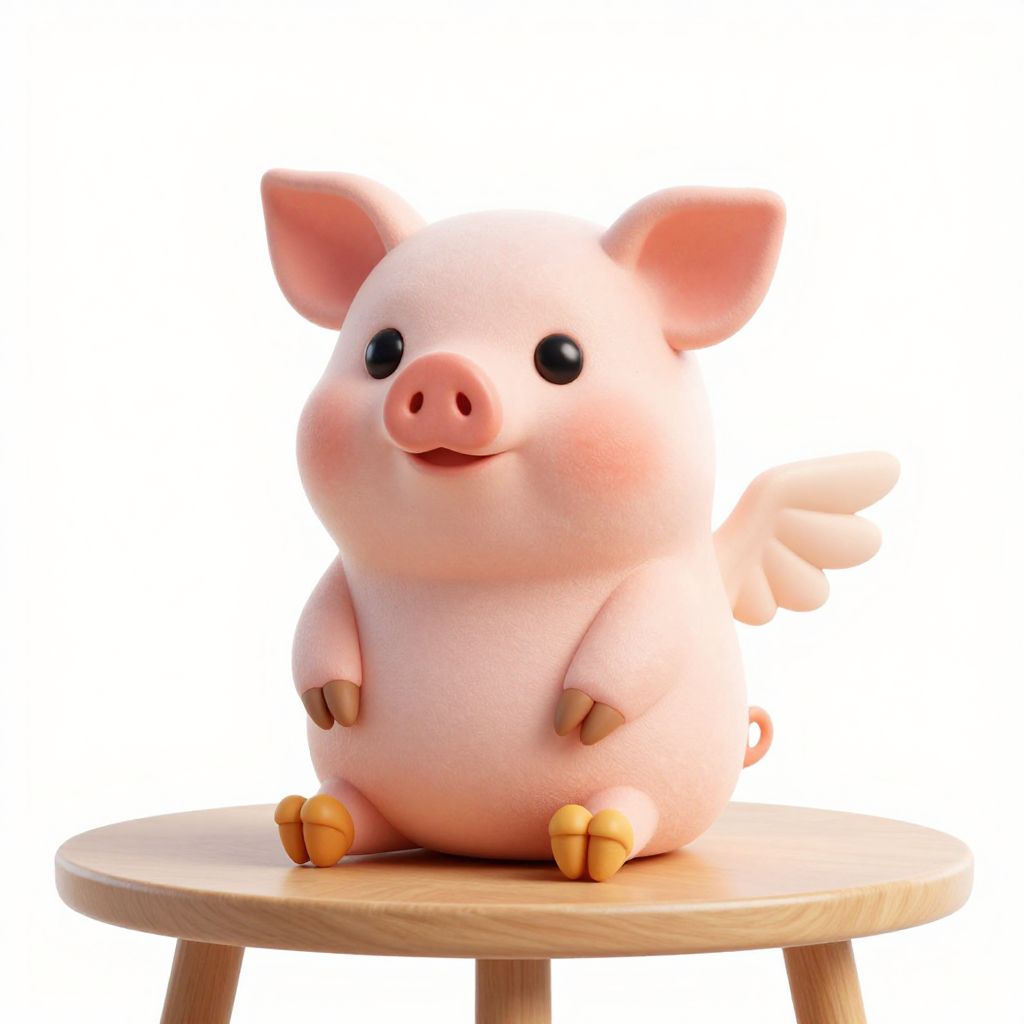 "Digital Design 3D model of a magic creature, looks like a pig, sitting on the a table, with chicken feet, small wing on its back, looks extremely cute, white background,"