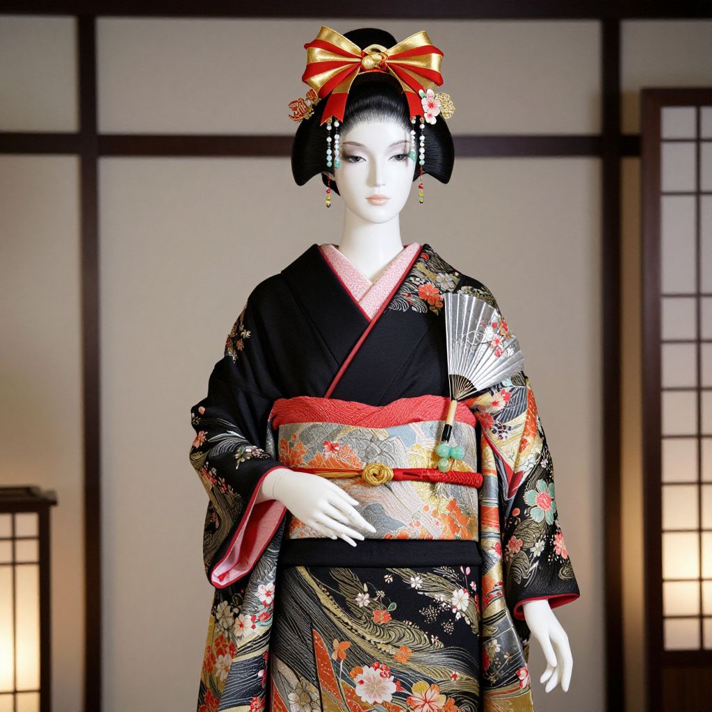 Mannequin in Traditional Japanese Kimono with Ornate Headdress
