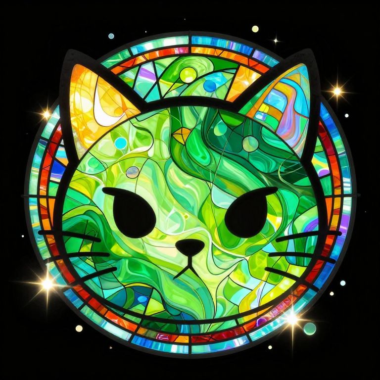 Ink Dripping Drawing, Graffiti Art Style, cute cat face without body, symmetry, warm colors, green, background colorful cloud streams with smooth lines and curves, dynamic, dramatic, vibrant colors, graffiti art style, ink drawing, dripping ink