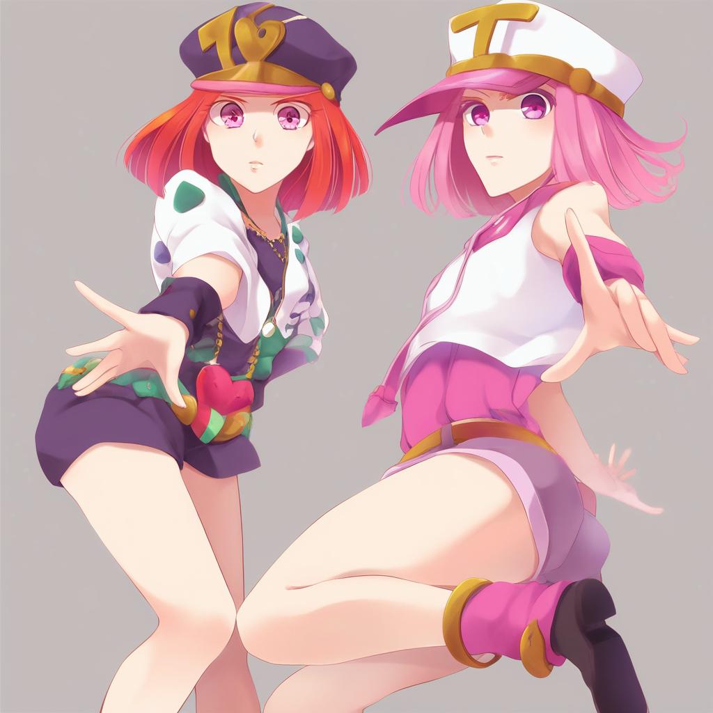 Hot pants (sbr), jojo no kimyou na bouken, 1girl, pink eyes, short hair, pink hair, red hair, hat, by artist ruu (tksymkw), leet