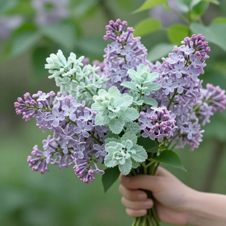 An ethereal bouquet of lilac and mint whispers serenity, its delicate hues and lush greenery evoking a sense of timeless peace and the quiet beauty of impermanence.