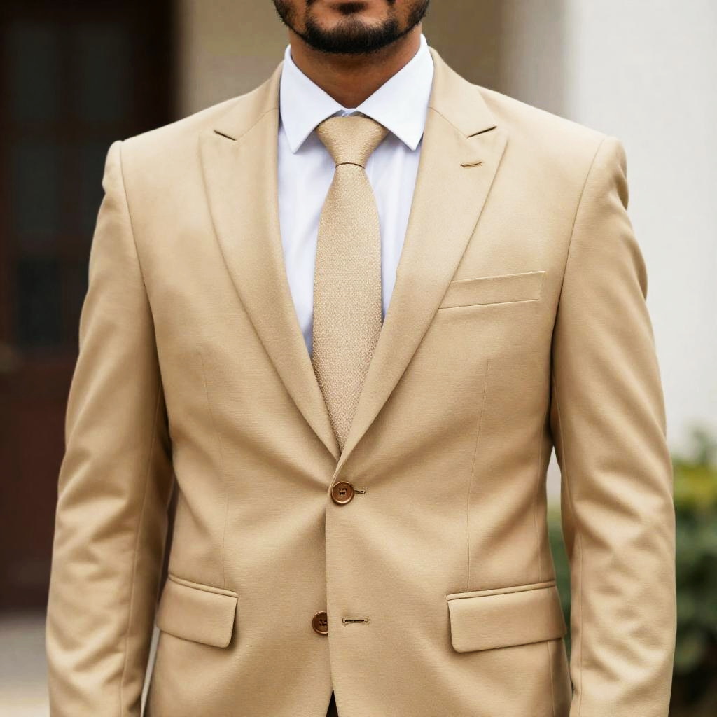 Groom Ethnic Wear, a close up of a man in a gold suit standing in a building