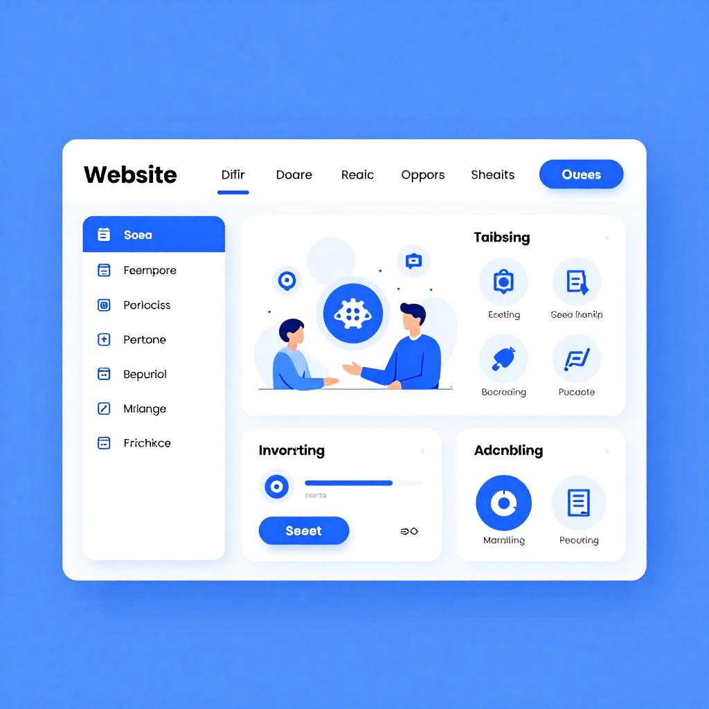 Website ai generator dashboard, user-friendly layout with AI-powered tools, digital workspace displaying real-time website building and machine learning algorithms, blue and white color scheme, modern minimalistic style, clean vector art