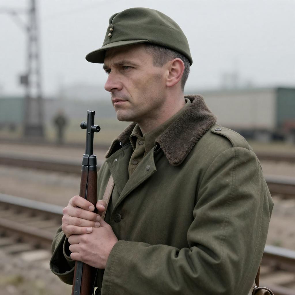Serious Man with Rifle in Cluttered Room