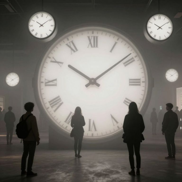 A clock made of fog ticks in reverse, unraveling time in a looped history that visitors can step through until they remember their first forgotten memory.