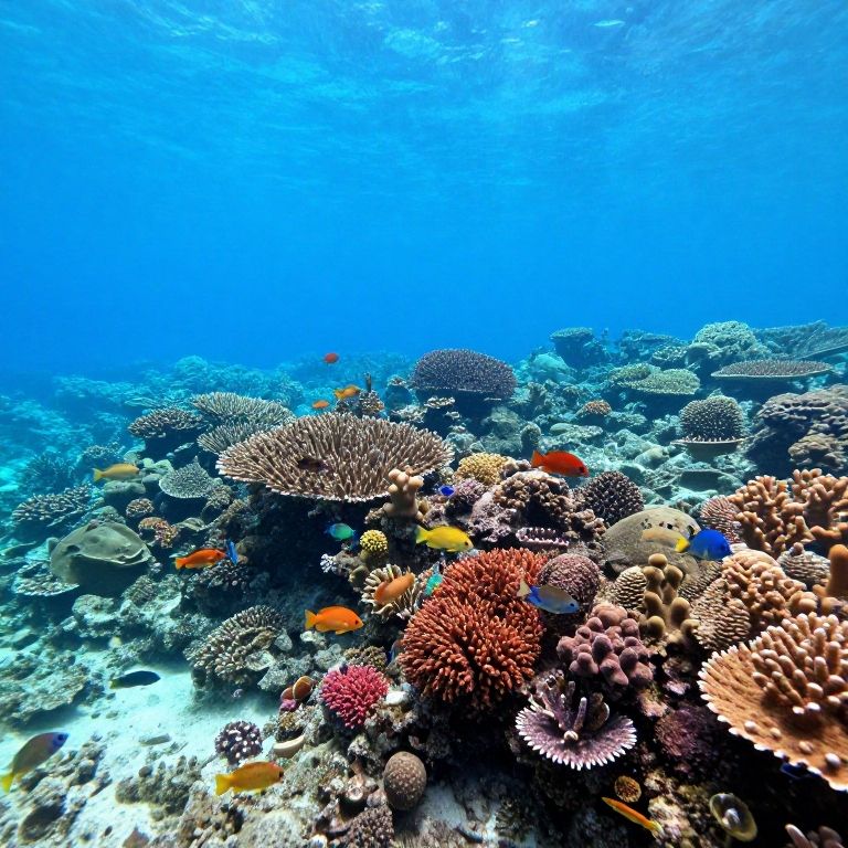Jauan visualized as an underwater coral reef teeming with colorful marine life, crystal clear blue water, vibrant corals and schools of fish moving gracefully, peaceful and lively ocean scene, photorealistic style with bright natural light and detailed textures
