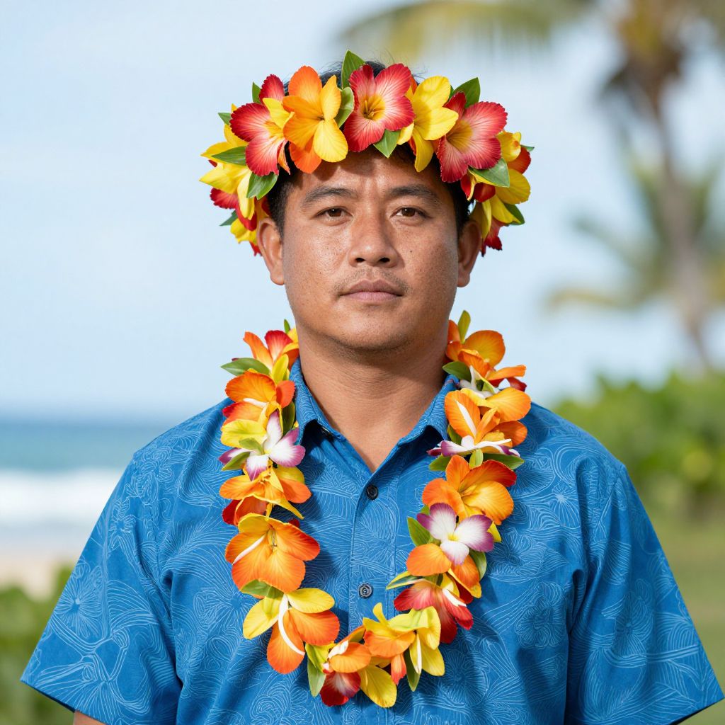 Man in Hawaiian Flower Headdress