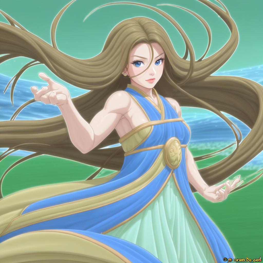 Mouri ran, meitantei conan, 1girl, floating hair, blue eyes, hair between eyes, brown hair, long hair, very long hair, medium breasts, by artist cream cod, anime