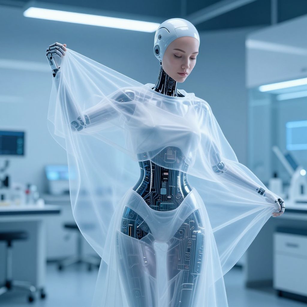 Rozen as a futuristic botanist in a high-tech greenhouse, tending to vibrant, otherworldly roses with luminescent petals, detailed cyberpunk aesthetic with neon highlights and advanced gardening tools, sci-fi ambiance with a blend of organic and technological elements.