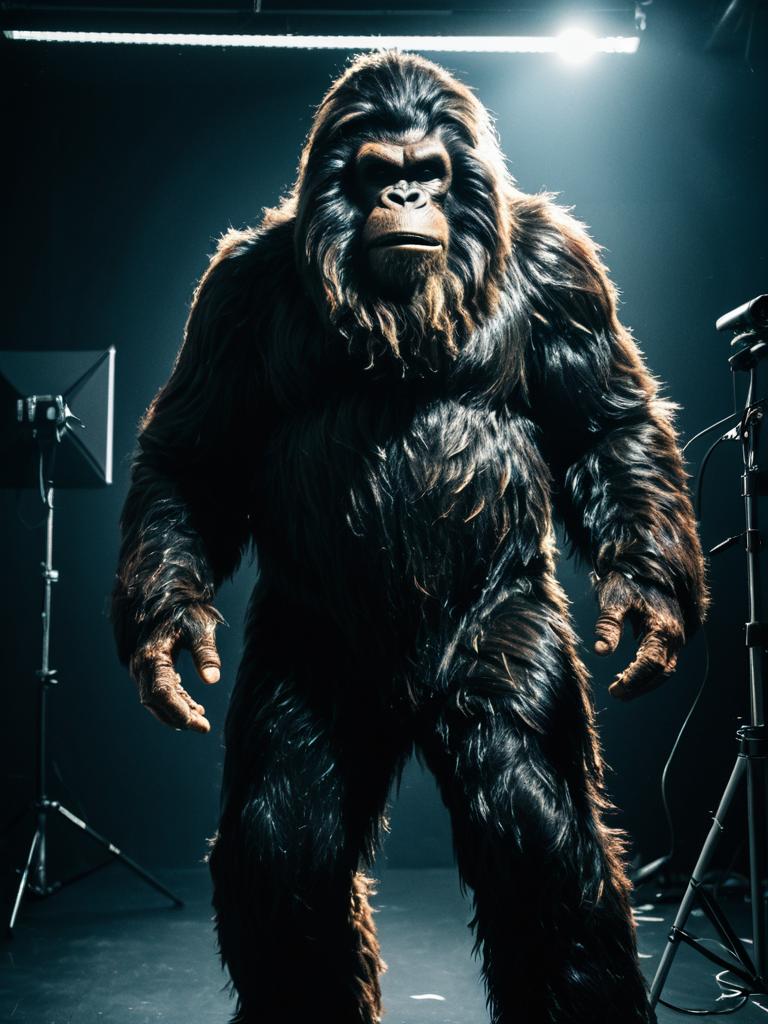 Man in Bigfoot Costume, photorealistic studio portrait, cinematic lighting