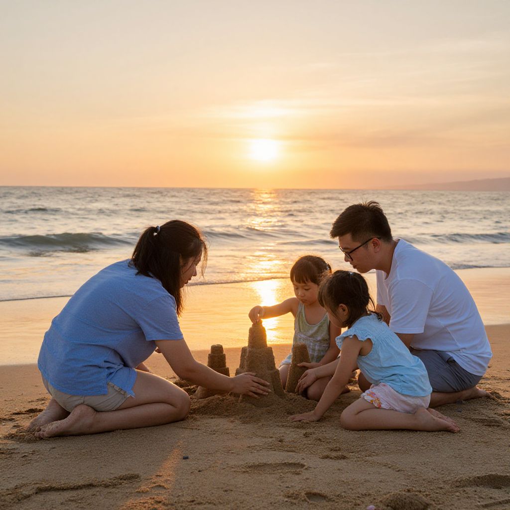Family Sandcastle at Sunset Beach