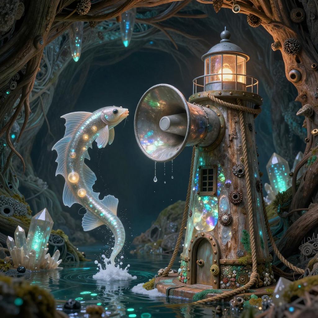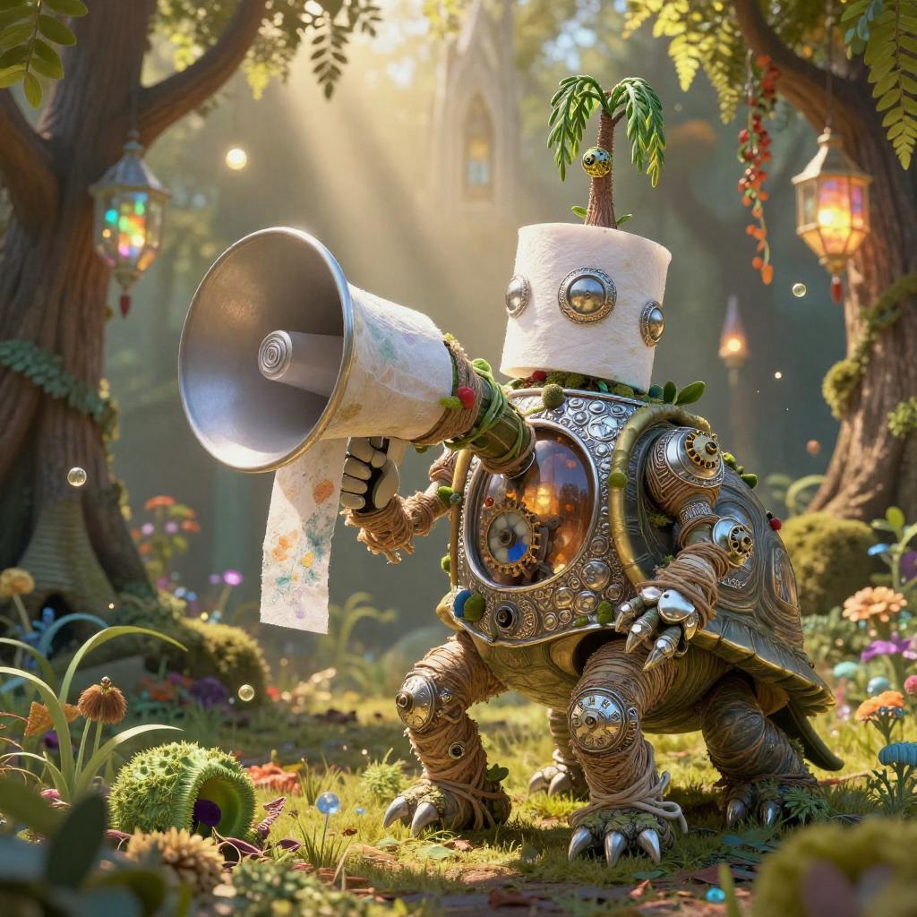 Bioluminescent Automaton in Ancient Mushroom Grove