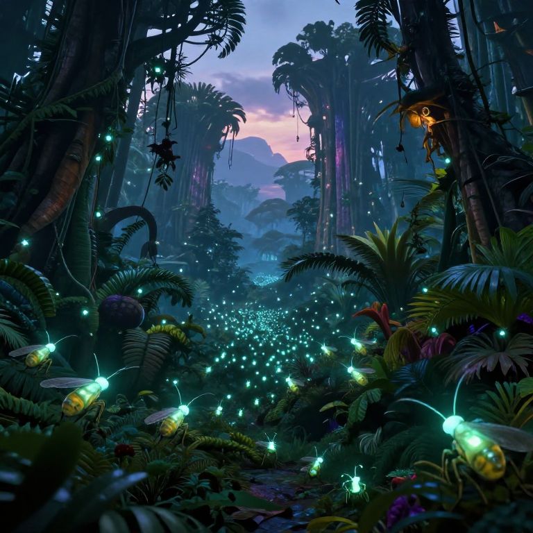 Glowing Swarm in Alien Jungle