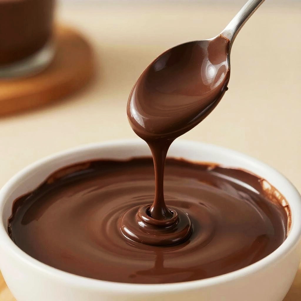 Scooping rich molten chocolate from a decadent dessert bowl, close-up texture focus, warm cozy kitchen lighting, soft shadows, mouthwatering appeal, smooth glossy surfaces with dripping chocolate, hyperrealistic food photography style.